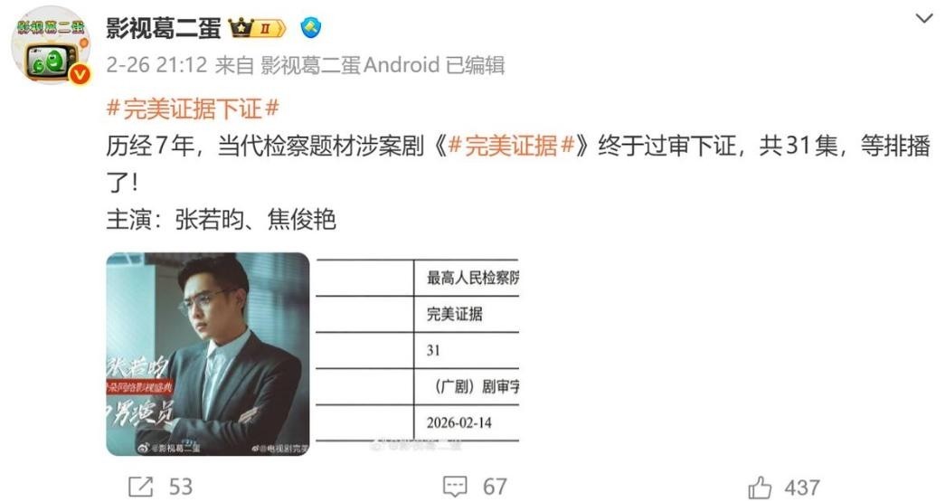 就在大众对检察题材与刑侦叙事渐生倦意之际,一部尘封七年、历经多轮打磨的31集检察现实主义大剧——《完美证据》,正式通过国家广电总局审核,官宣定档。